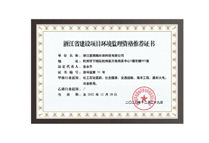 浙江省建設項目環境監理資格推薦證書(甲級)